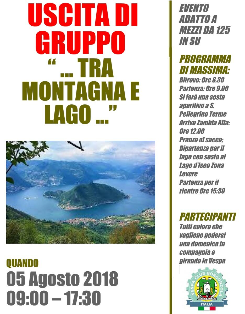 Vespa raduno ufficiale a Sarnico. Ritrovo sede ore 7.30 partenza ore 8.00 con Fascia, pieno e TESSERA.